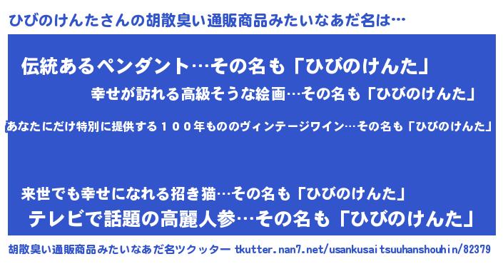 | 意味不明あだ名 | 『住所不定無職ひびのけんた(10歳)』 |