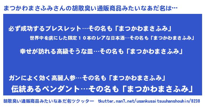 | 肩書あだ名 | 『まつかわまさふみ国家主席』 |