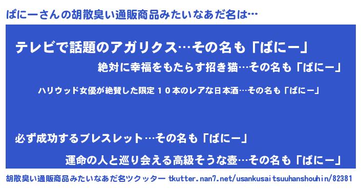 意味不明あだ名 | 『住所不定無職ばにー(59歳)』『自称ばにー』 |