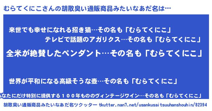 | 意味不明あだ名 | 『とにかく怪しいむらてくにこ』 |