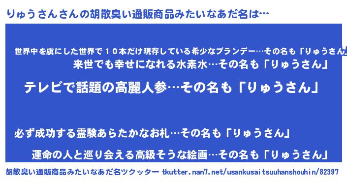 | 意味不明あだ名 | 『自称りゅうさん』『永久保存りゅうさん』 |