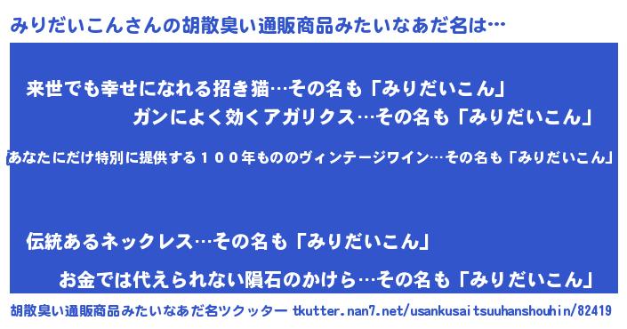 | 意味不明あだ名 | 『住所不定無職みりだいこん(11歳)』 |