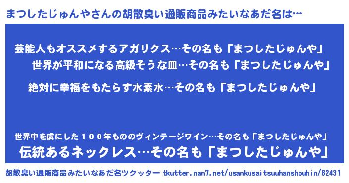 | ヘコむあだ名 | 『まつしたじゅんや(苦笑)』『まつぷりん』 |