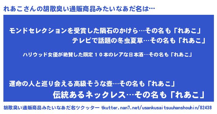 | 欧米人風あだ名 | 『ダレノガレれあこ』『ダニエルれあこ』 |