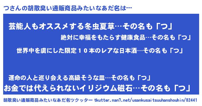 | 意味不明あだ名 | 『住所不定無職つ(14歳)』『自称つ』 |