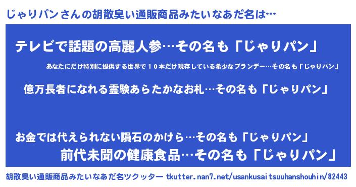 | ヘコむあだ名 | 『じゃもー』『じゃりパン(小並感)』 |