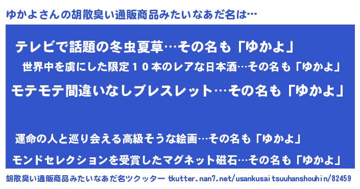 | 意味不明あだ名 | 『ペロリンゆかよ』『自称ゆかよ』 |