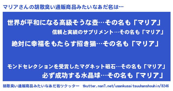 マリアさんの胡散臭い通販商品みたいなあだ名をツクッター!