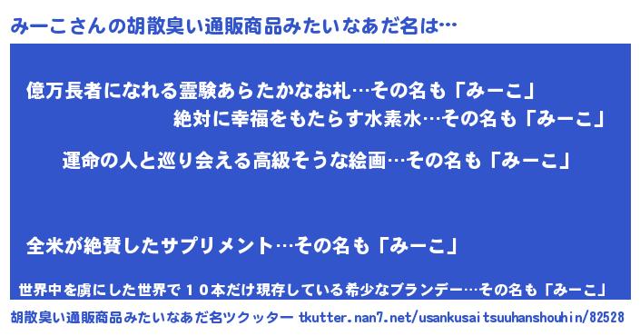 | 恥ずかしいあだ名 | 『みーっちょ』『プリティーみーこ』 |