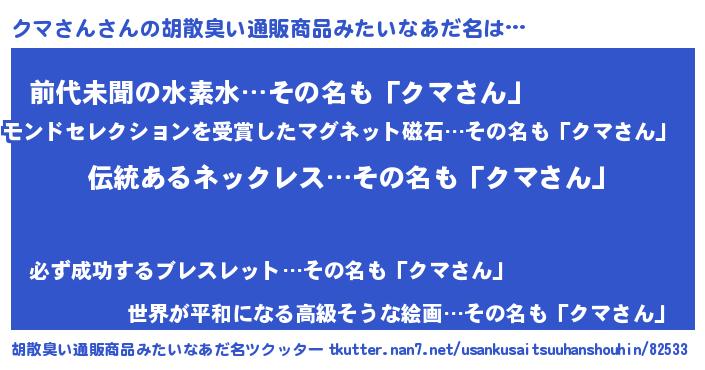 | ポケモン風あだ名 | 『ヒクマサン』『クマゴンZ』 |