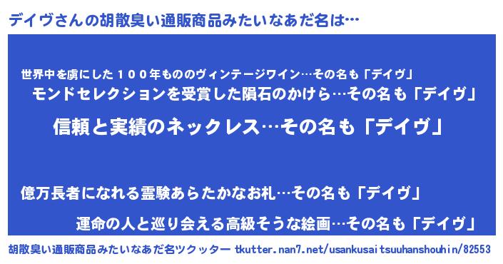 | 意味不明あだ名 | 『とにかく怪しいデイヴ』 |