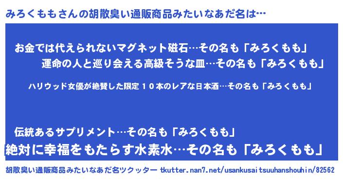 | 意味不明あだ名 | 『住所不定無職みろくもも(14歳)』 |