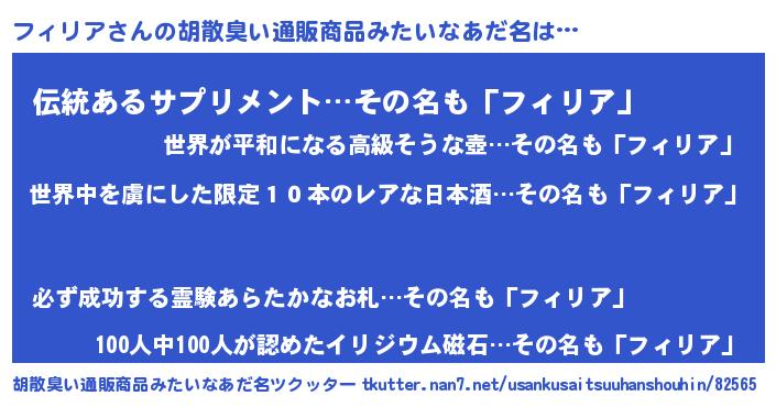 | 意味不明あだ名 | 『住所不定無職フィリア(59歳)』 |
