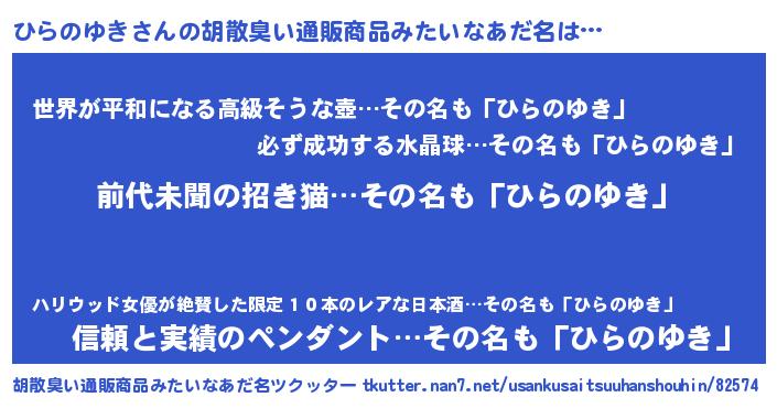 | ヘコむあだ名 | 『ひらのゆき(笑)』『豆乳』 |