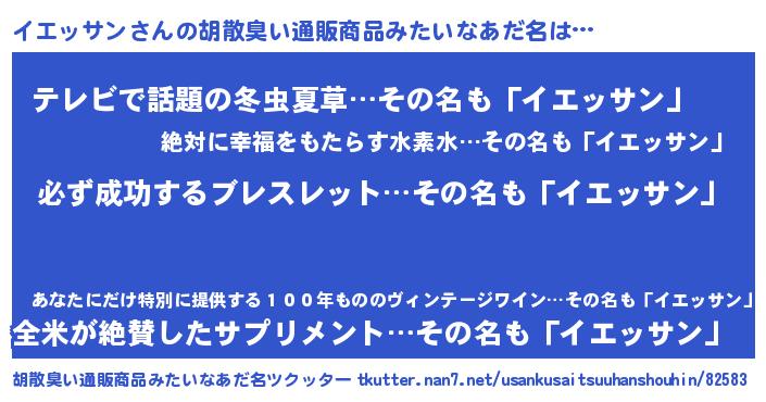 | 男性向けラノベタイトル風あだ名 | 『イエッサンの憂鬱』 |
