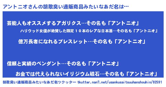 | 意味不明あだ名 | 『ペロリンアントニオ』『自称アントニオ』 |