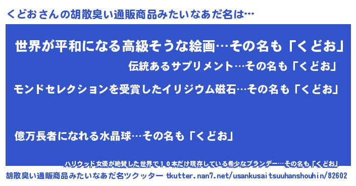 | ヒーロー風カッコイイあだ名 | 『天空の使者くどお』『仮面クドダー』 |