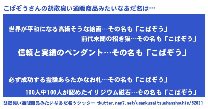 | ヒーロー風カッコイイあだ名 | 『暗黒騎士コバ』『ウルトラこばぞうマン』 |