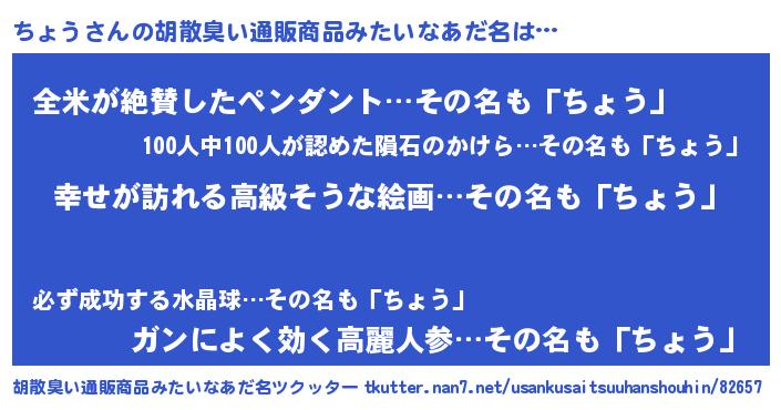 | ヘコむあだ名 | 『つくし』『ちょっぺ』『ちょもー』 |