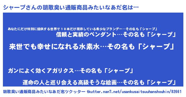 | 意味不明あだ名 | 『永久保存シャープ』『自称シャープ』 |