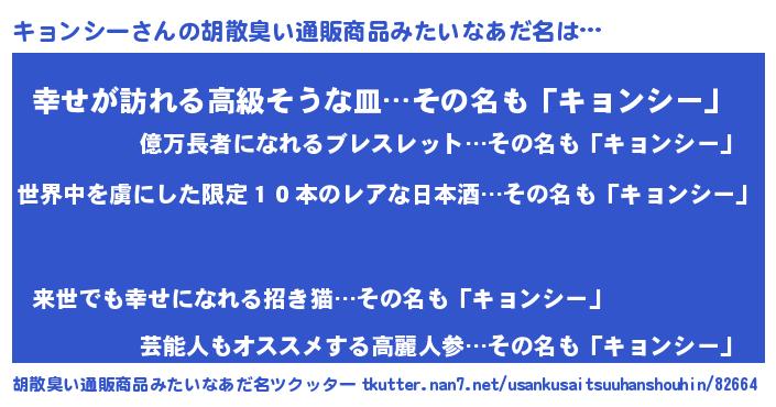 | 恥ずかしいあだ名 | 『キョっちょ』『キョンシーデラックス』 |