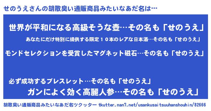 | ヒーロー風カッコイイあだ名 | 『慈愛の使者せのうえ』『仮面セノダー』 |