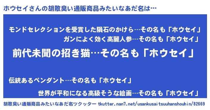 | 意味不明あだ名 | 『永久保存ホウセイ』『自称ホウセイ』 |