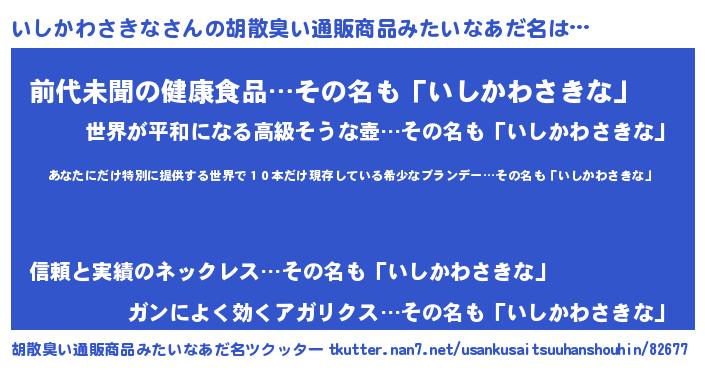 | 意味不明あだ名 | 『住所不定無職いしかわさきな(85歳)』 |