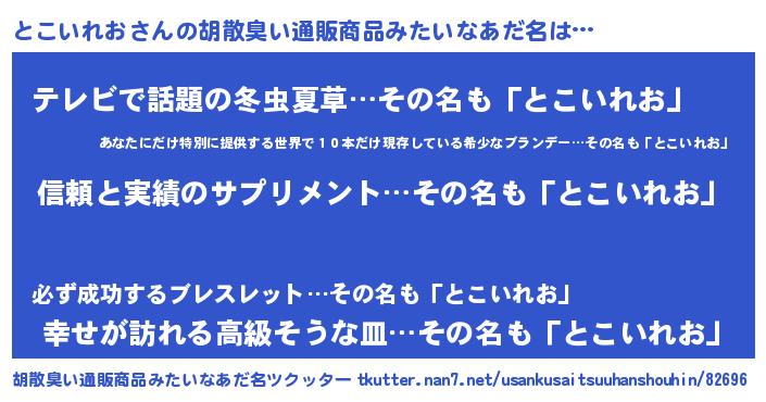| 意味不明あだ名 | 『とにかく怪しいとこいれお』 |
