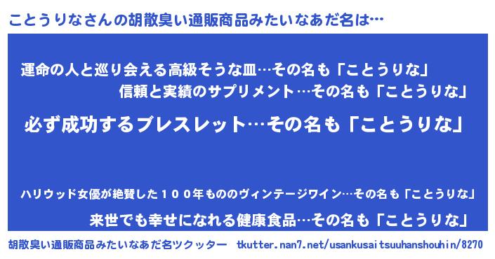 | 男性向けラノベタイトル風あだ名 | 『緋弾のコトウリナ』『ことうりなの憂鬱』 |