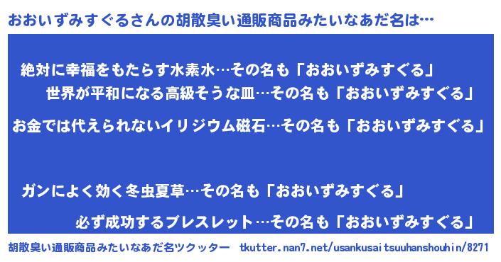 | ヘコむあだ名 | 『おおいずみすぐる(爆)』『おおっふぃ~』 |