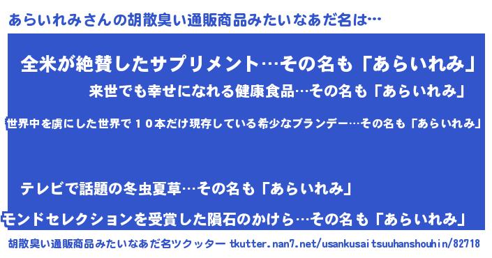 | 欧米人風あだ名 | 『あらいれみ・ステッグマイヤー』 |