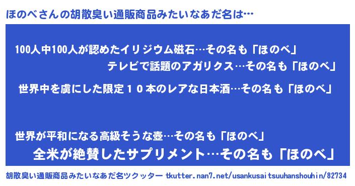 | 男性向けラノベタイトル風あだ名 | 『この素晴らしい世界にほのべを!』 |