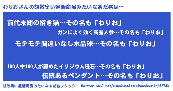 | 意味不明あだ名 | 『ペロリンわりお』『永久保存わりお』 |