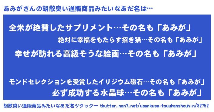 | ヘコむあだ名 | 『つくし』『あみを』『あみにゅー』 |