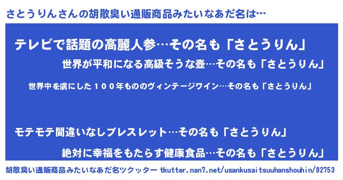 | 意味不明あだ名 | 『住所不定無職さとうりん(10歳)』 |