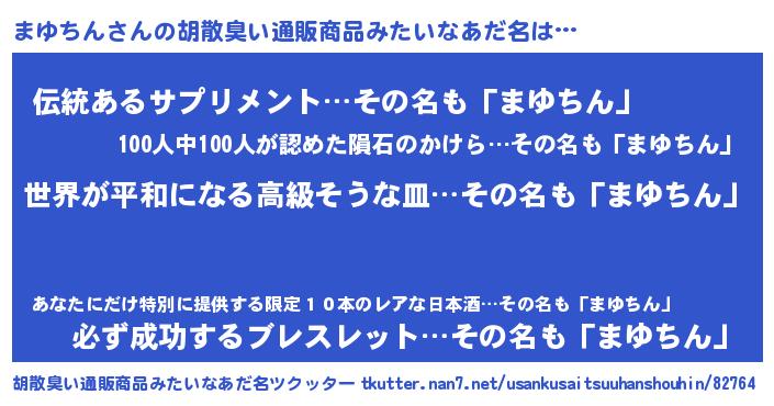 まゆちんさんの胡散臭い通販商品みたいなあだ名をツクッター!