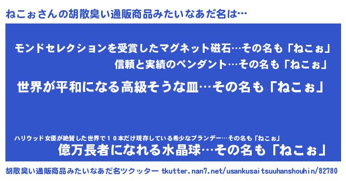 | ポケモン風あだ名 | 『ネコゴンZ』『ネコォダネ』 |