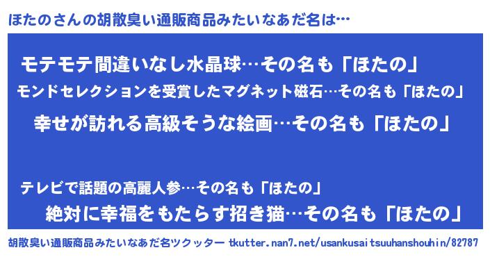 | ヘコむあだ名 | 『つくし』『ほたにー』『ほたの(爆)』 |