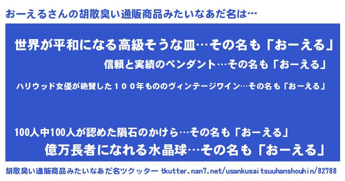 | 意味不明あだ名 | 『住所不定無職おーえる(8歳)』 |