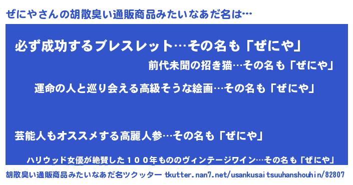 | 意味不明あだ名 | 『ぜにやフォーエバー』『ペロリンぜにや』 |