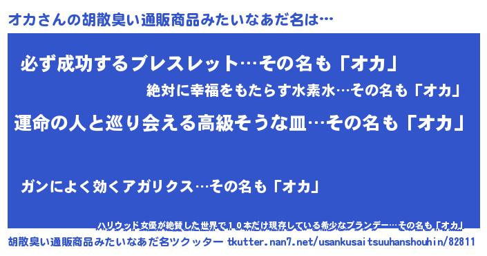 | ヘコむあだ名 | 『酢こんぶ』『オカふぇ~』 |