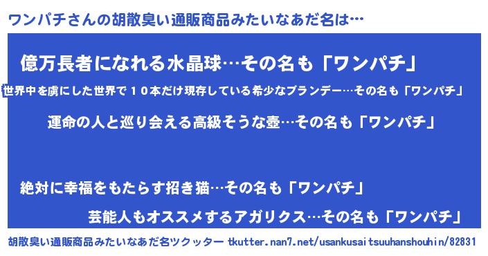 | 意味不明あだ名 | 『ワンパチフォーエバー』『自称ワンパチ』 |
