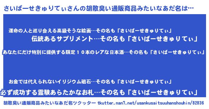 さいばーせきゅりてぃさんの胡散臭い通販商品みたいなあだ名をツクッター!