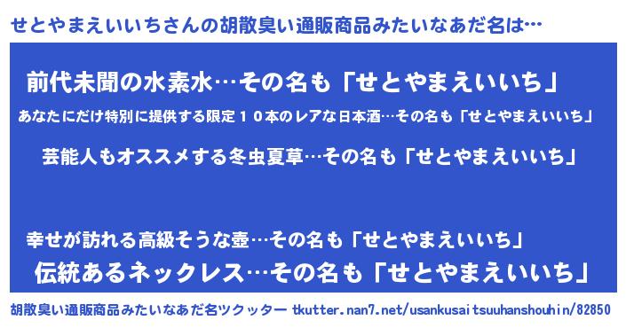 | 意味不明あだ名 | 『自称せとやまえいいち』 |