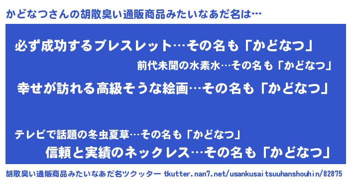 | 意味不明あだ名 | 『かどなつフォーエバー』 |