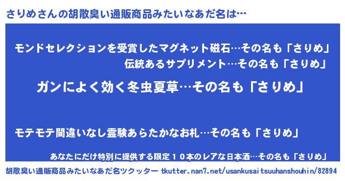 | 意味不明あだ名 | 『自称さりめ』『眠気覚ましガムさりめ味』 |