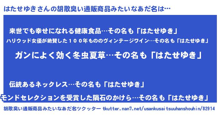 | ヘコむあだ名 | 『はたせゆき(苦笑)』『はたっぺ』 |