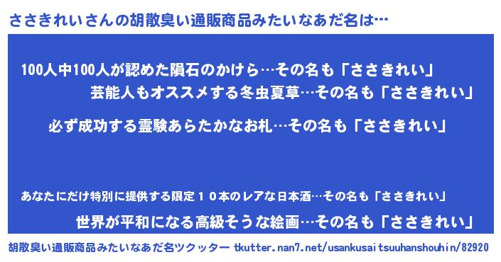 | 意味不明あだ名 | 『ペロリンささきれい』『自称ささきれい』 |