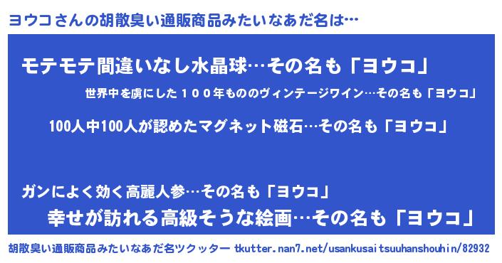 | 欧米人風あだ名 | 『ダニエルヨウコ』『マイケルヨウコ』 |